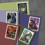 With this pane of stamps, the U.S. Postal Service marks the 50th anniversary of ᴅᴜɴɢᴇᴏɴs & ᴅʀᴀɢᴏɴs, the iconic fantasy roleplaying game that has become a cultural phenomenon. By inviting participants to imagine themselves as wizards, warriors, and other adventurers in exciting and treacherous fantasy worlds, ᴅᴜɴɢᴇᴏɴs & ᴅʀᴀɢᴏɴs — now known worldwide by the familiar abbreviation “D&D” — opened doors to whole new universes of creativity for generations of players.