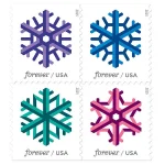 Antonio Alcal?? and Leslie Badani designed the 2015 Snowflake Stamps, featuring various types of snowflakes in different colors.